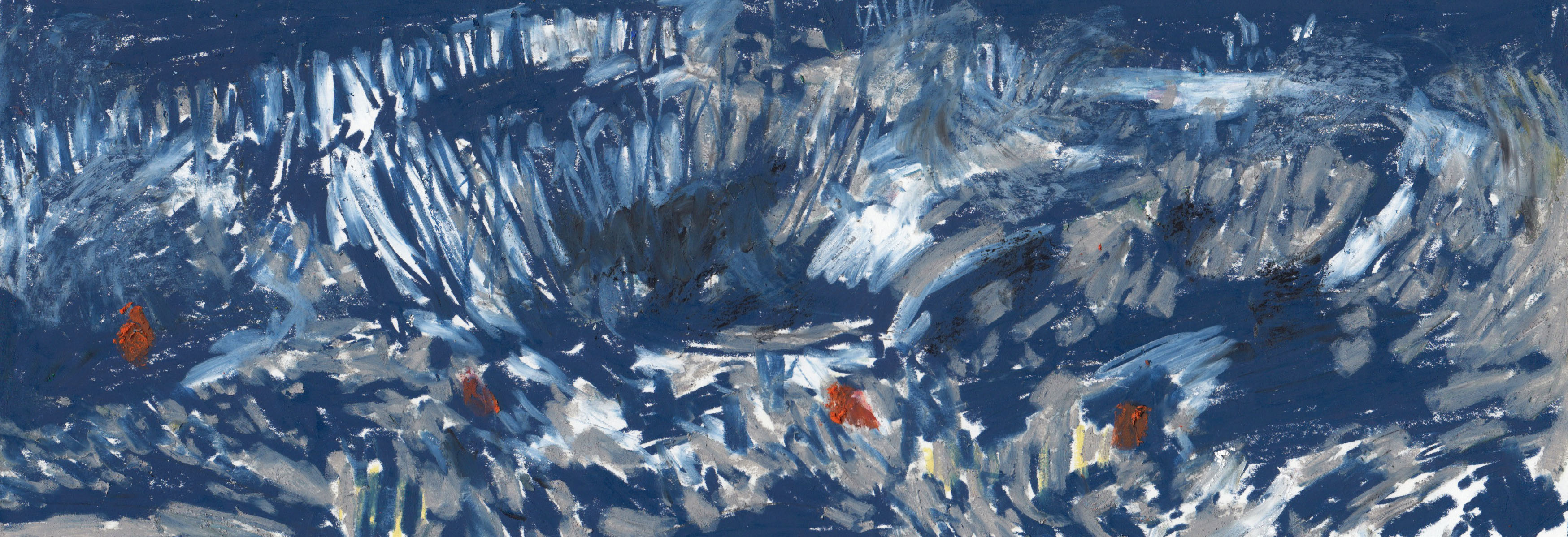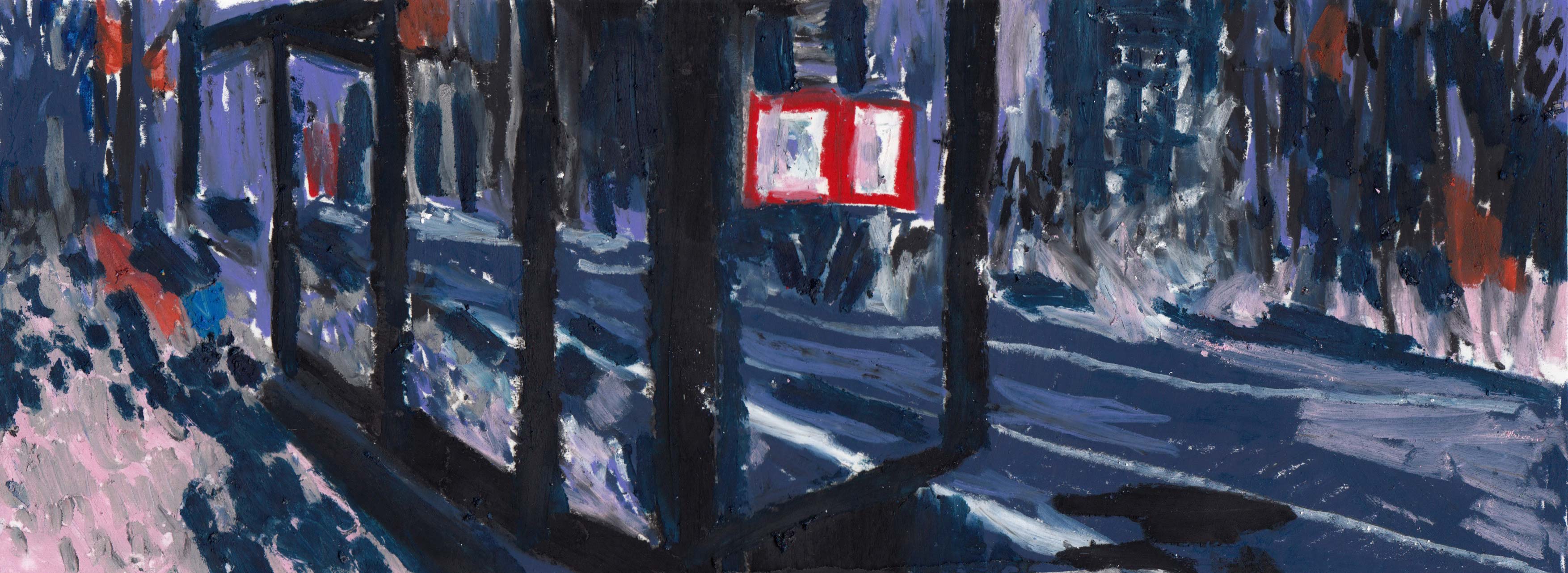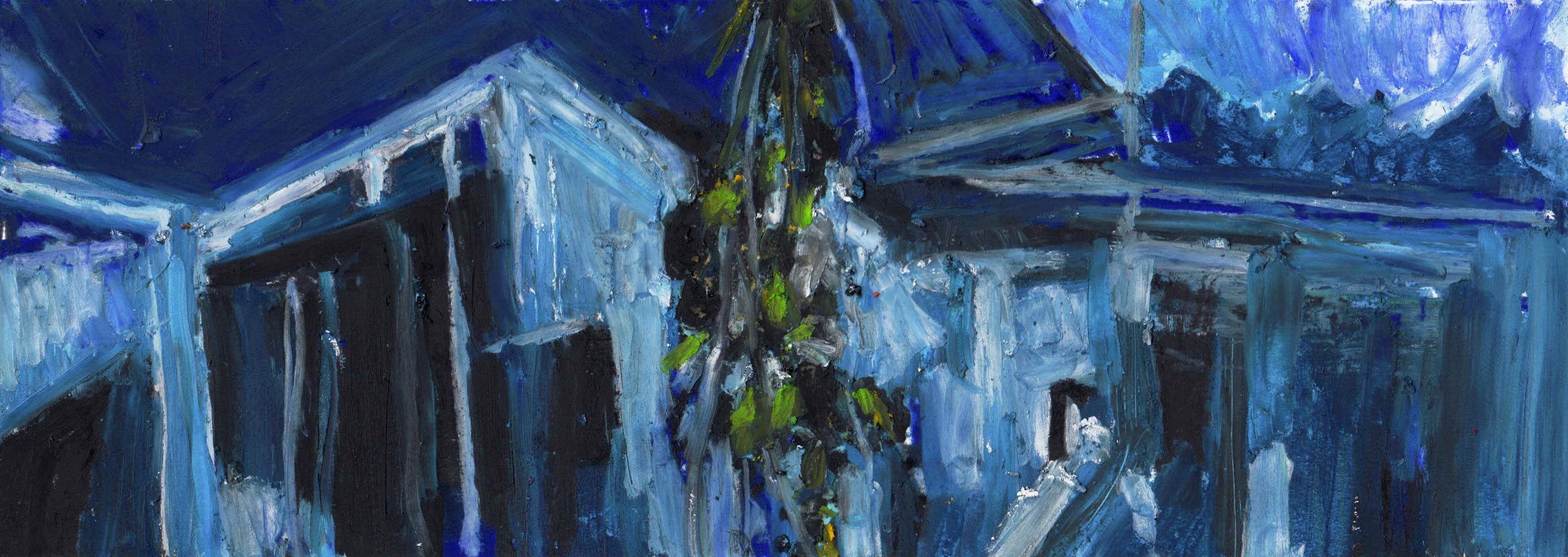 Na een rode reeks zet Alison haar geschilderde analyses verder met de kleur van weemoed en eenzaamheid, melancholie en kilheid, comfort en onheil.