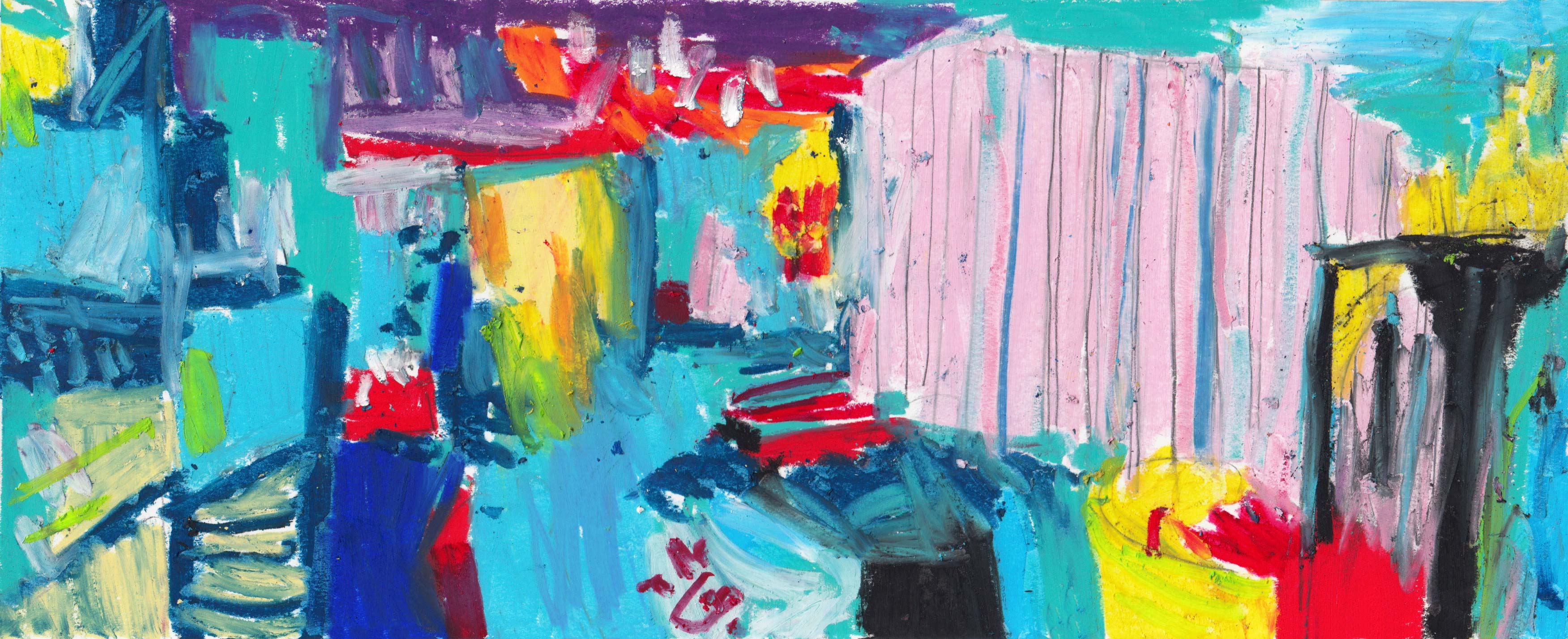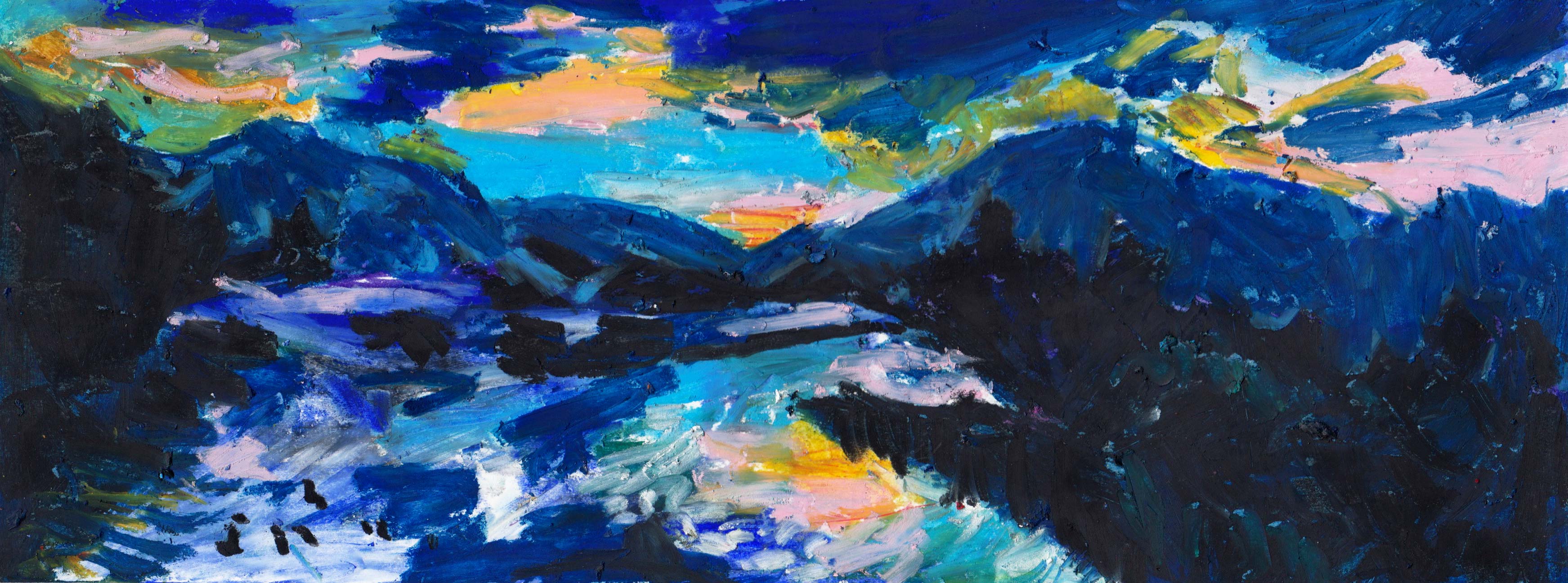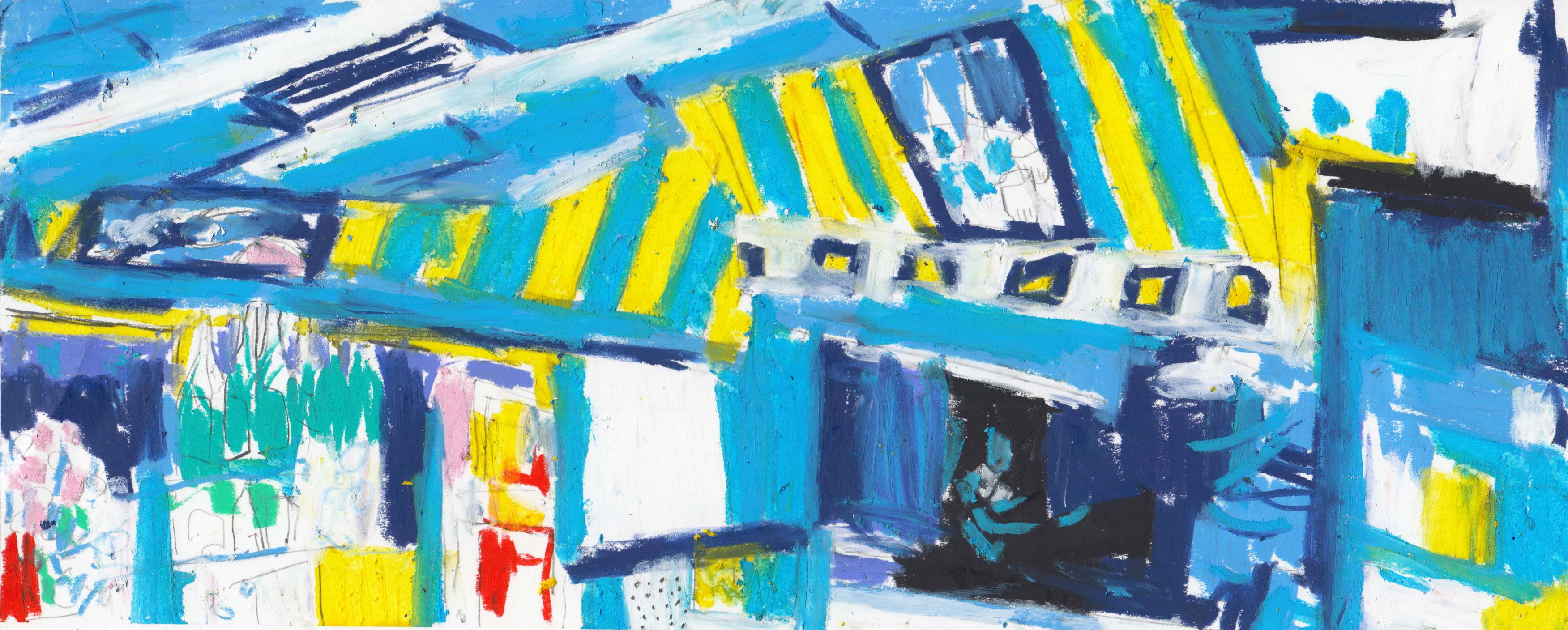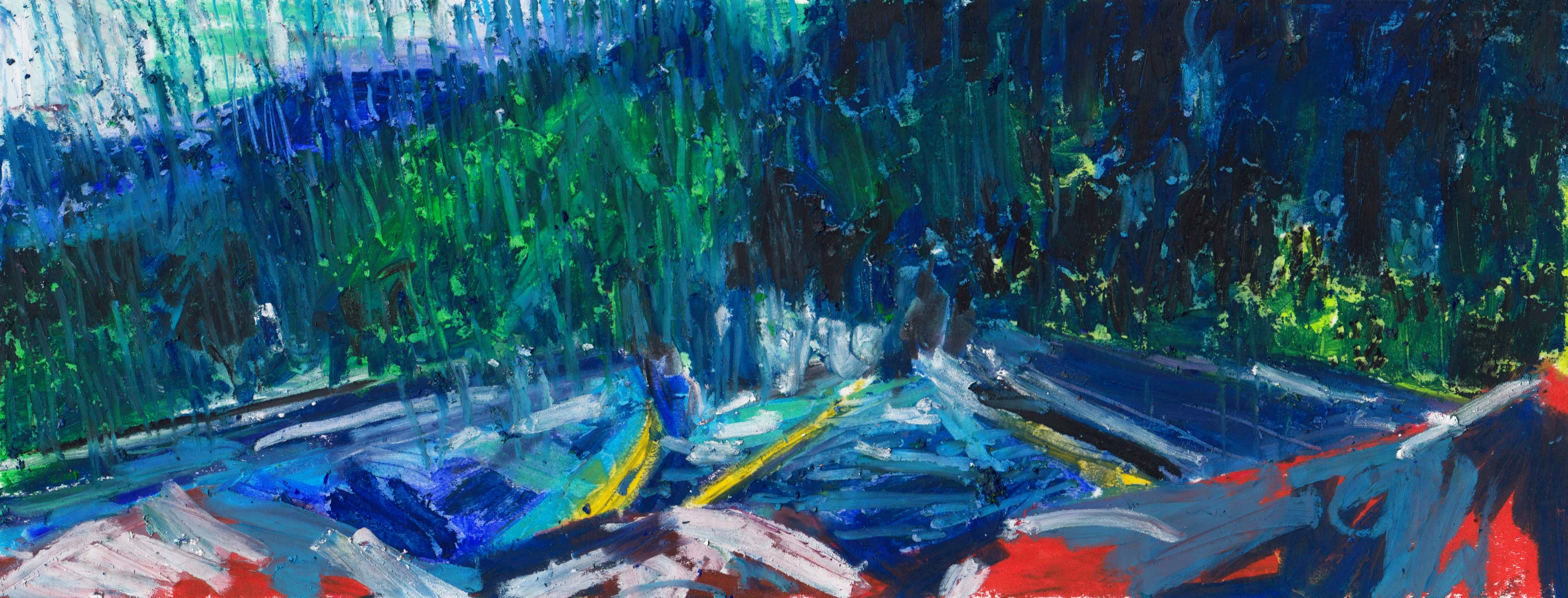 Na een rode reeks zet Alison haar geschilderde analyses verder met de kleur van weemoed en eenzaamheid, melancholie en kilheid, comfort en onheil.
