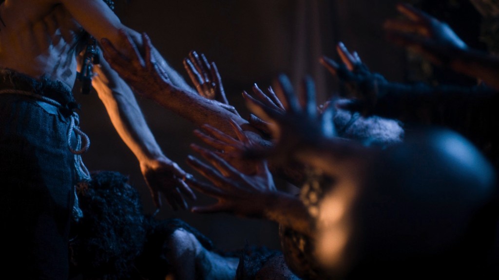 Even gedisciplineerd in het aanhouden van de Schrödingersvergelijking als van het in leven houden van mogelijkheid en onzekerheid, zijn Robert Eggers’ The VVItch en Lukas Feigelfelds Hagazussa: A heathens curse. Beide uitdiepingen van hekserij en diens psycho- en sociologische fenomenen. Ze verkennen de ruimte van het vrouw-zijn in een omgeving die er van overtuigd is dat Eva de appel heeft geproefd. In deze films is het wederom de omgeving, breed gezien, die een belangrijke rol speelt. Een fantast dient de wereld rondom zich goed te gebruiken, ook al kan hij die zelf creëren. Het vormen van een geloofwaardigheidsbodem voor heksenhysterie is dé steunpilaar van deze films. Het hekserijparadigma opent via het historische raam van giften, hallucinaties, rituelen en randfiguren een vrijheidsgraad die het mogelijk maakt om met onze Aristoteliaanse[4] loep de moraliteit van verzet, rebellie en overleven te bekijken. In die mate zelfs dat wanneer de monsters hun maskers afdoen we niet weten om wat te huiveren: de repressie of de heldendaden.