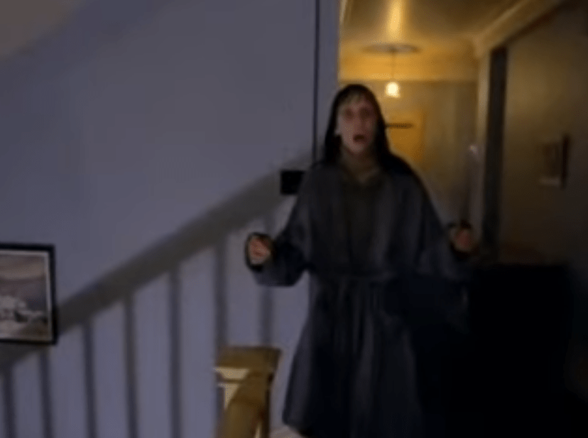Zou de timide Wendy Torrance, voor mij ondanks haar onzekerheid toch een van de sterkste – of beter: instinctiefste – moederfiguren uit de filmgeschiedenis, zou die schuchtere, murw getergde Wendy haar mond zo wagenwijd opensperren omdat ze schrikt van die onverwachte beer en heer? Dit zou het eerste bovennatuurlijke gebeuren zijn dat zij ziet in de film; of is er dus echt iemand anders in het hotel? Of hapt zij zo onpeilbaar naar adem omdat zij net als Rob Ager in die (framing van die) beer haar tanden poetsende zoon herkent en nu eindelijk tot gruwelijk inzicht komt? Daarvan kon ik die nacht erg moeilijk inslapen. Het is genoegzaam bekend dat perfectionist Kubrick in het bijzonder Shelley Duvall moedwillig het leven erg zuur heeft gemaakt op de set van The Shining. Nog erger is dat velen het erover eens zijn dat dit ervoor zorgde dat de moe getreiterde Texaanse haar rol van vernederde echtgenote zo geloofwaardig heeft neergezet. Hoe het ook zij, die frêle Shelley Duvall zal net als de al genoemde Brian V. Towns vast ook wel niet hebben mogen weten waar die berenpakscène op sloeg. Maar haar schreeuw, wazig als de still hierboven, vind ik nu erger dan die van Edvard Munch.