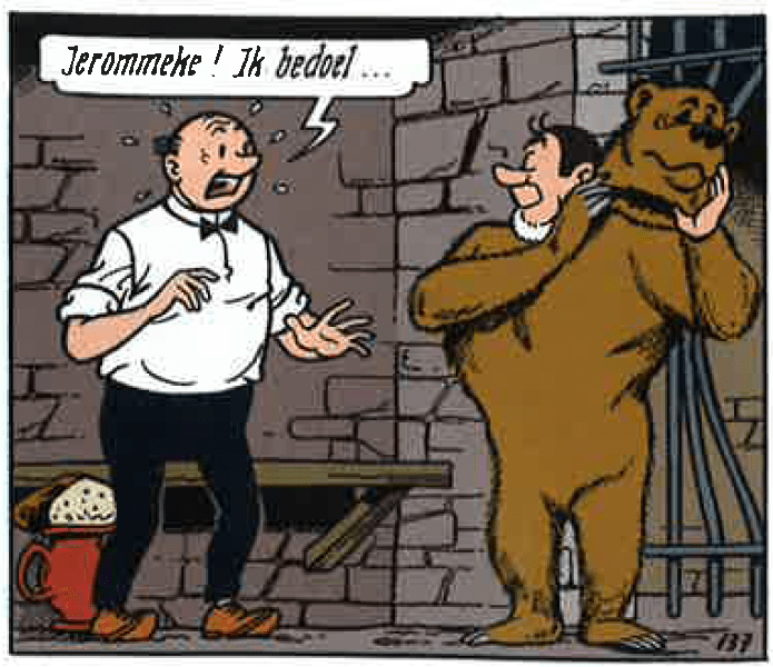 Paul Geerts, bijvoorbeeld, de opvolger van Willy Vandersteen, heeft die met ‘Het berenbeklag’ (1999) geen Vlaamse Shining willen maken? Dat album, voorwaar helemaal gewijd aan de redding van een batterij Balkanberen, begint met een onmiskenbare knipoog naar de overweldigende opening van de Kubrickfilm. Op een ongewoon grote openingsplaat zien we een bebost berglandschap. Tussen de bergen in: water en een door het verre perspectief zo kleine auto dat we onmogelijk kunnen zien wie erin zit. Het volgende plaatje: Lambik aan het stuur, de andere helden naast en achter hem. Oké, de auto is geen Volkswagen Kever en evenmin geel (een blauwe jeep met een caravan), en Kubricks duizelingwekkende Rocky Mountains werden vervangen door de net iets minder ruige Balkan in Europees Turkije. Uiteraard doe ik mijn hele theorie niet hier, maar elders uit de doeken. Sta mij enkel nog toe te verwijzen naar een schokkende scène in strook 137. Voor zover ik weet, zegt die Rob Ager daar helemaal niets over.
